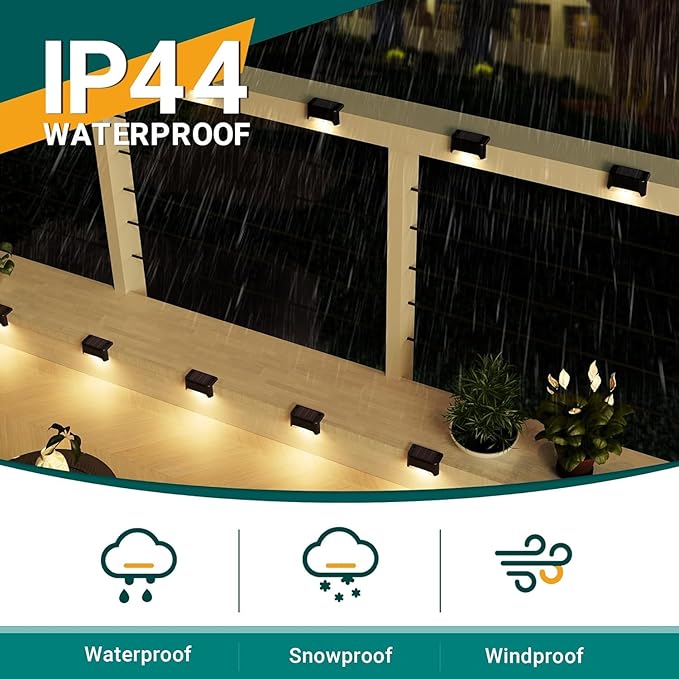 - [Weatherproof & Built to Last] Crafted with a premium ABS casing, BRITSPEAR solar stair lights are engineered to withstand the harshest weather conditions, be it scorching heat, heavy rain, or snow. With an IP65 waterproof rating, your outdoor lighting investment will endure for the long haul.